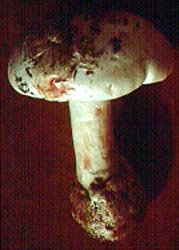 Technical description (t.b.d.) BRIEF DESCRIPTION: Amanita mutabilis has a white pileus 110 mm wide. Its stem (up to 130 x 22 mm excluding the bulb) is white and terminates below in a bulb (up to 80 x 50 mm) with a membranous, limbate volva. The annulus is skirt-like, attached near the top of the stem, and white to yellowish. The spores measure (8.7-) 10.0 - 14.6 (-18.9) x (5.0-) 6.0 - 8.0 (-12.6) µm and are ellipsoid to elongate (rarely cylindric) and amyloid. Clamps are absent from the bases of basidia. When basidia are crushed, they often release granules that are dextrinoid. Before a specimen of A. mutabilis is handled, bruised, or smelled, it may suggest a robust specimen of A. bisporigera G. F. Atk. in the field. Two striking characters of this species are its odor and the staining of its context. When scratched, the flesh quickly turns the color of American raspberry sherbet. The odor (especially just as the collecting packet around a fresh specimen is opened) often is distinctly of anise. Odor alone is not a sufficient character for determining this mushroom because other species of Amanita in its geographic range also may smell of anise. This is a species of the pine-oak woods of the sandy coastal plain in the eastern United States. Its range extends from New Jersey to Florida and Texas. Bas placed A. mutabilis in his stirps Preissii (see the Australian species A. preissii (Fr.) Sacc.). It is interesting to compare A. mutabilis with another Australian species, A. rosea D.A. Reid. -- R. E. Tulloss Photo: Hanna L. Tschekunow (left, Florida); R. E. Tulloss (right, New Jersey).