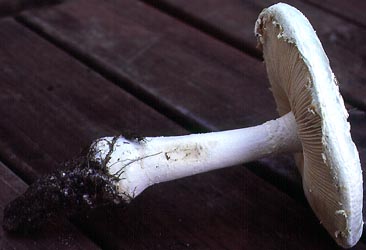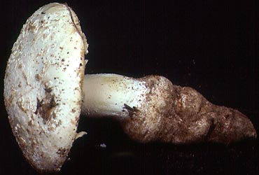 he reviewed; and he was unable to assess the volva at the base of the stem, because this area was badly damaged in